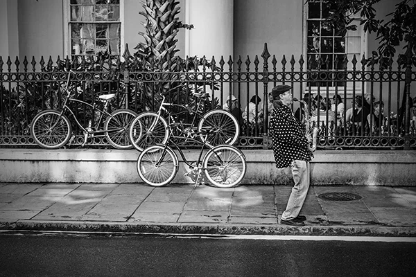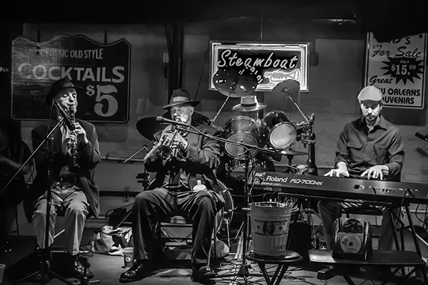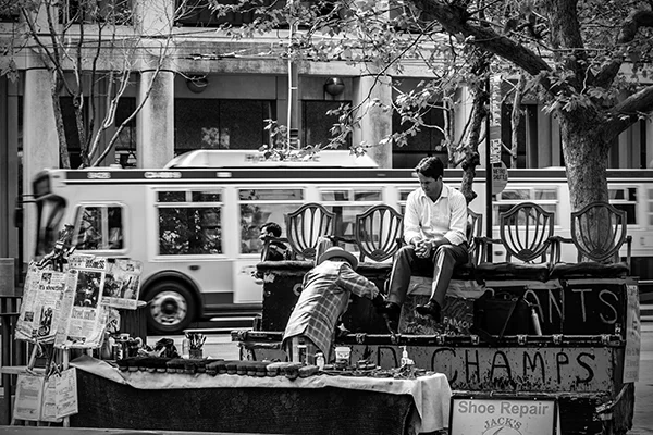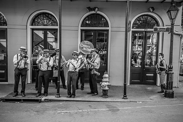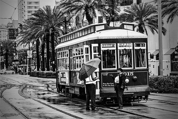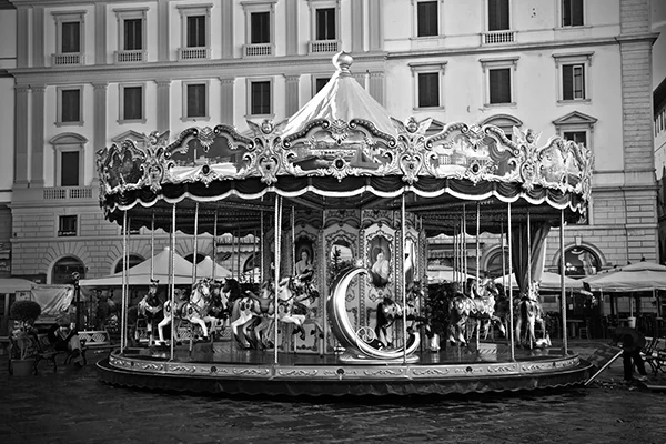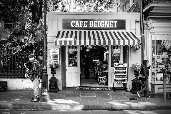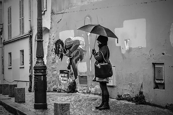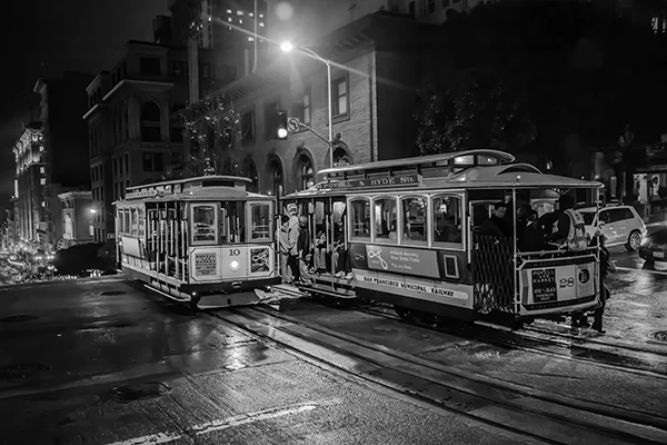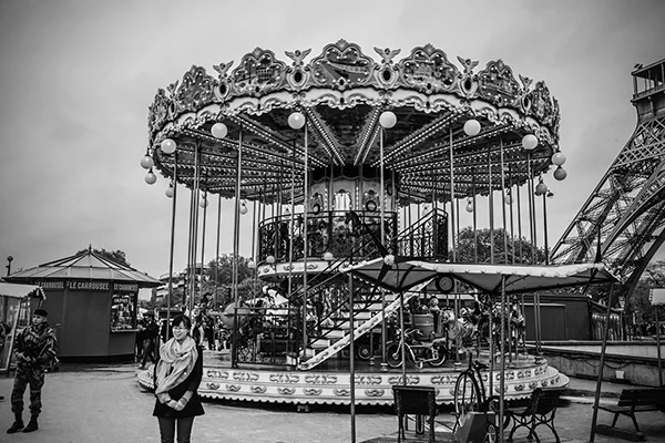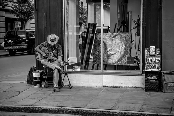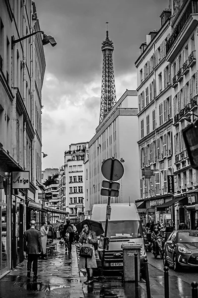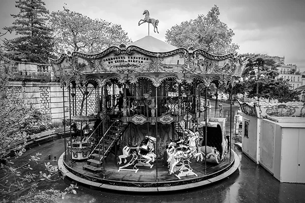 Great cities of the world have an energy that emanates from the life that is happening within them. That energy pulsates to the routines, events and patterns of human activity that are peculiar to a particular city. The energy varies by city and time of day. While it is possible to make compelling photographs within cities that do not include people, I tend to look for ways to respectfully include people in photographs. The people provide a means for capturing the energy of the city. While the people included in my photographs are individuals, I'm inclined to think of the people in the photographs as archetypes of various characters in the story of the city. All cities, in my experience, have the street musician character. A minstrel in Barcelona can be viewed an archetype of street musicians everywhere. Street musicians are compelled to make music and share it with others. Beyond that, most musicians are driven by a desire to create an income stream, however meager, by making music. Some musicians do better than others. The musician archetype practically defines the energy that unique to the French Quarter in New Orleans just as cable cars uniquely define the San Francisco experience. If you've ever been to San Francisco you surely understand that unreliability is a prominent part of the cable car experience. The same can be said of the trolley experience in New Orleans. Encountering music, cable cars or trolleys at night adds a noir atmospheric to the experience. Black and white night photography in cities provides a window into that noir atmospheric. Dark and rainy days have their own noir sensibility. Rainy days bring out umbrellas and Gustave Caillebotte's 19th century painting Paris: A Rainy Day forever associated rainy days and umbrellas with Paris. One way to get out of the rain on a rainy day in Paris is to hop on a carousel within the shadow of the Eiffel Tower or while ascending the steps to the cathedral on the hill in Montmartre. City Life is my attempt to convey these energies, moods and sensibilities of some of the world's great cities.